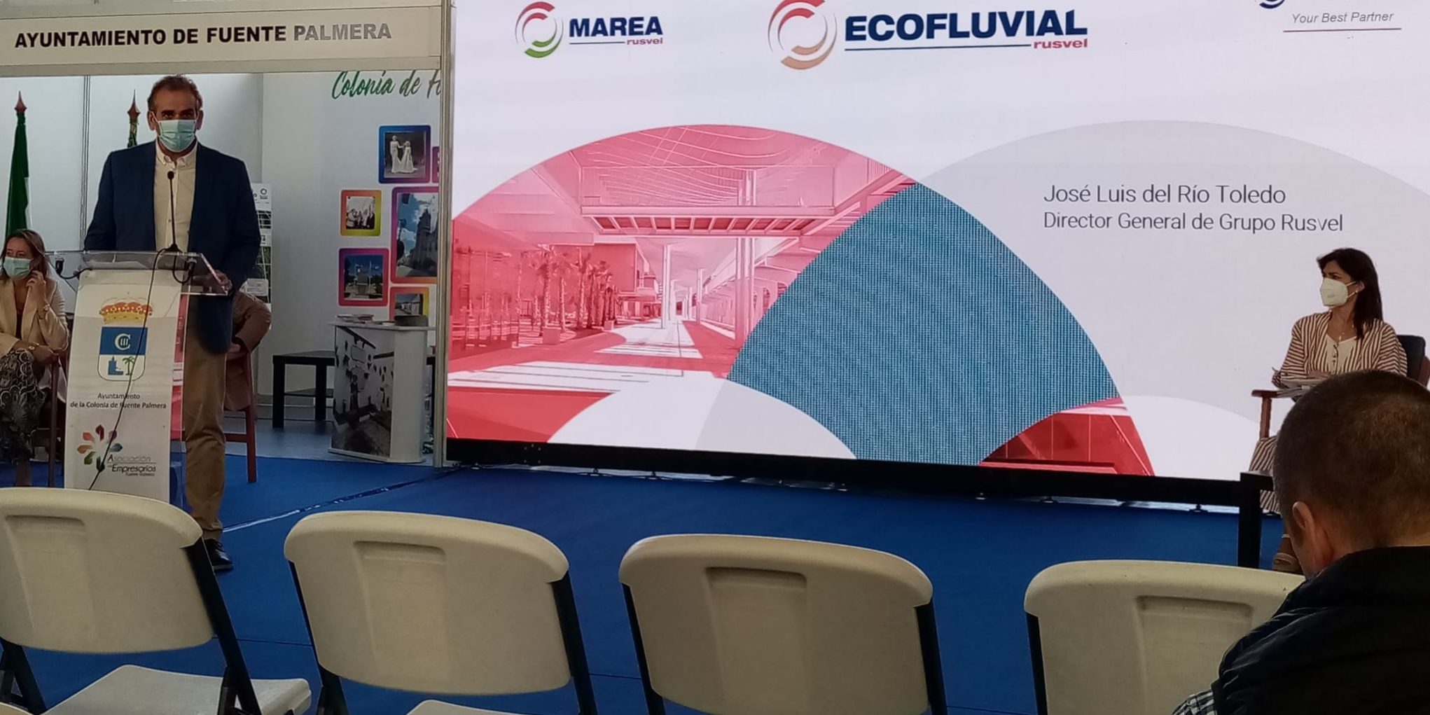 En la jornada del viernes se celebró el III Encuentro de Comunidades de Regantes, con el patrocinio de la empresa Marea. En concreto, las filiales del Grupo Rusvel participaron en el Bloque Temático III denominado Soluciones y mejoras al servicio del regadío, con las ponencias de José Luis del Río, director general de Grupo Rusvel, y de Emilio Díaz, director de Biopción. Marea y Ecofluvial estuvieron representadas por Miguel Ángel Pernas, responsable de desarrollo mecánico de Ecofluvial .