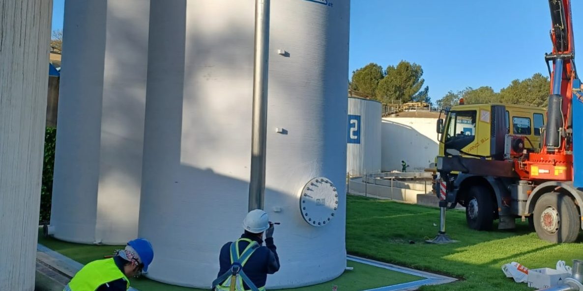 Avanzan a buen ritmo los trabajos que está llevando a cabo MAREA en la ampliación de la instalación de almacenamiento de cosustrato en la EDAR de Tablada, en Sevilla. Ya se han instalado los dos nuevos depósitos de almacenamiento de cosustrato de 40m3 de capacidad, además de las tuberías y accesorios necesarios para cada uno de los dos nuevos depósitos.