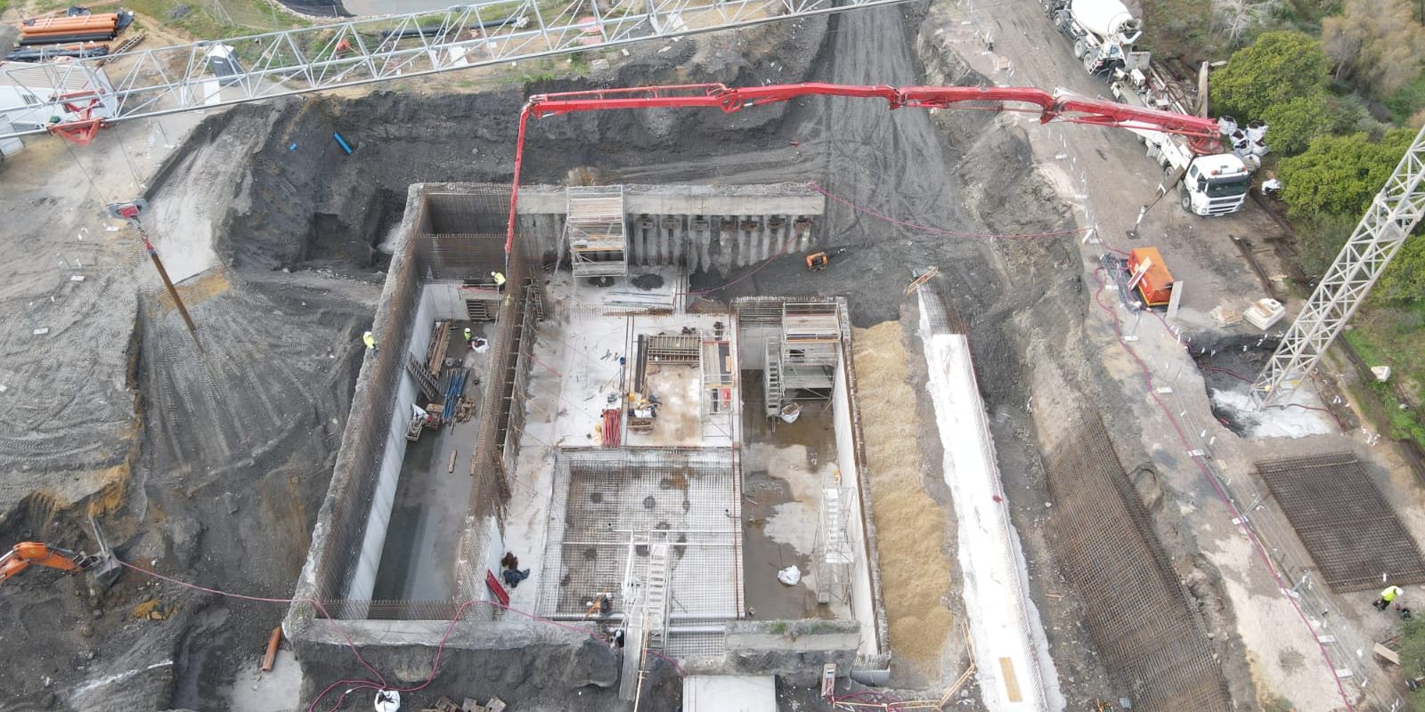 Actualmente, se trabaja de forma intensiva en la ejecución del edificio de la depuradora, con labores de encofrado y hormigonado de la totalidad de la estructura de obra civil. Está previsto que estos trabajos concluyan en unos meses, momento en el que se iniciará el montaje de todo el equipamiento electromecánico de la nueva depuradora proyectada.