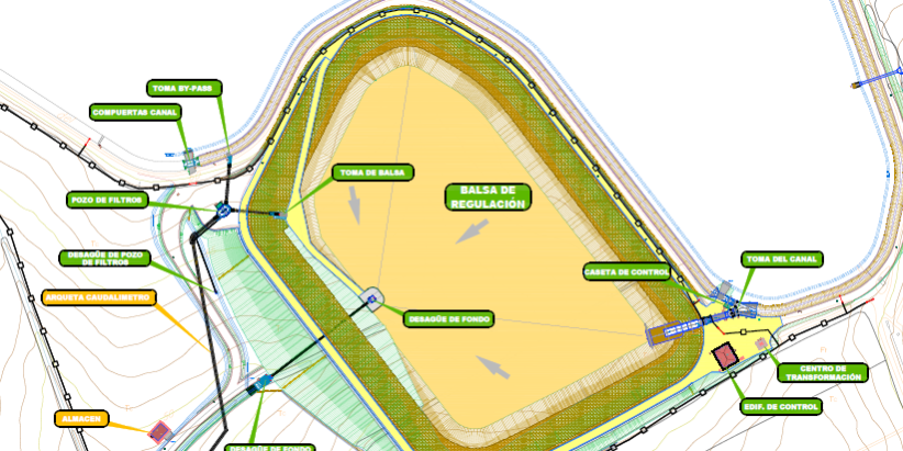 – Obra civil para demoler la toma actual y ejecutarla, así como los canales de desbaste. El nuevo canal tendrá la misma sección del canal existente: tres metros de anchura y 3.8 metros de altura interior, con una longitud aproximada de 27 metros.