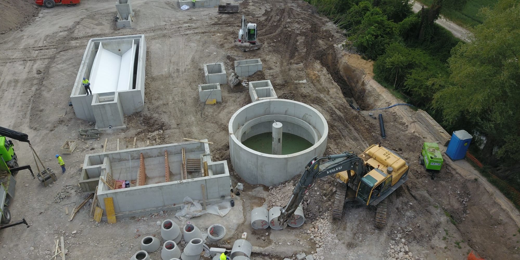 Por otro lado, en la EDAR de Villariezo, una vez concluida toda la ejecución de la obra civil y gran parte de la urbanización de la parcela, se está procediendo al montaje del edifico de control mediante paneles de hormigón prefabricado, así como de los equipos del pozo de gruesos.